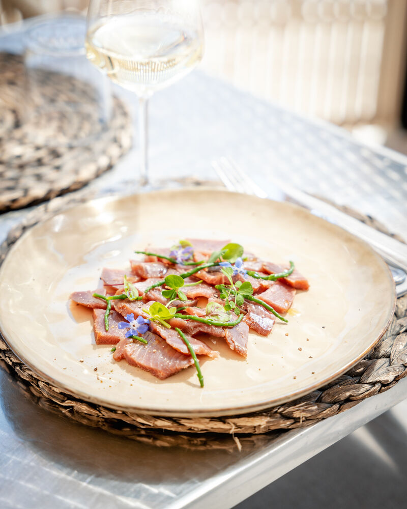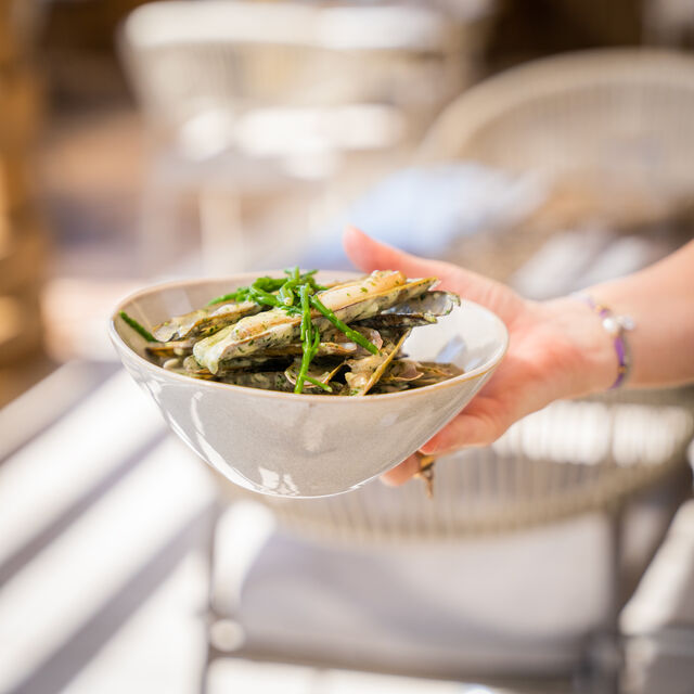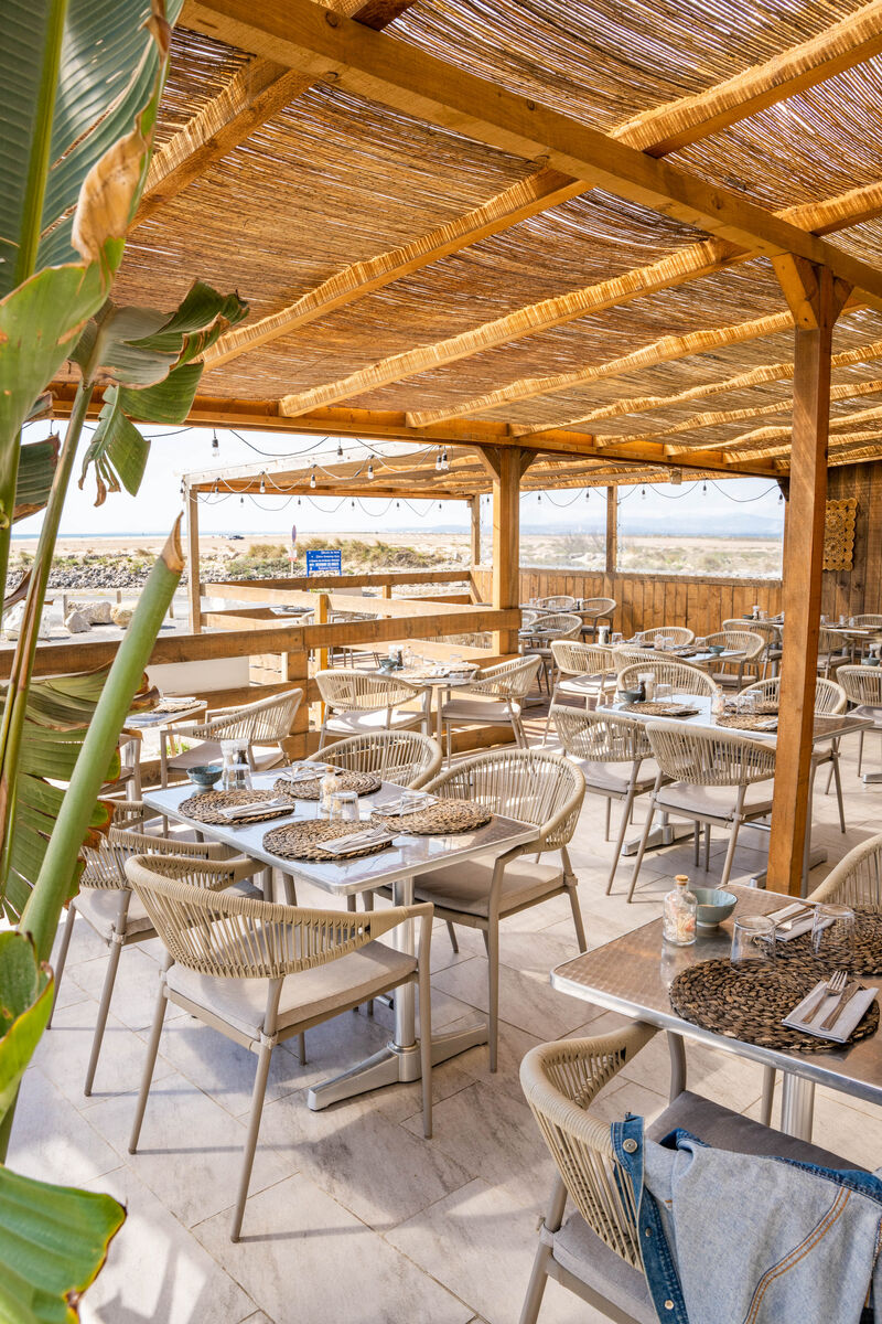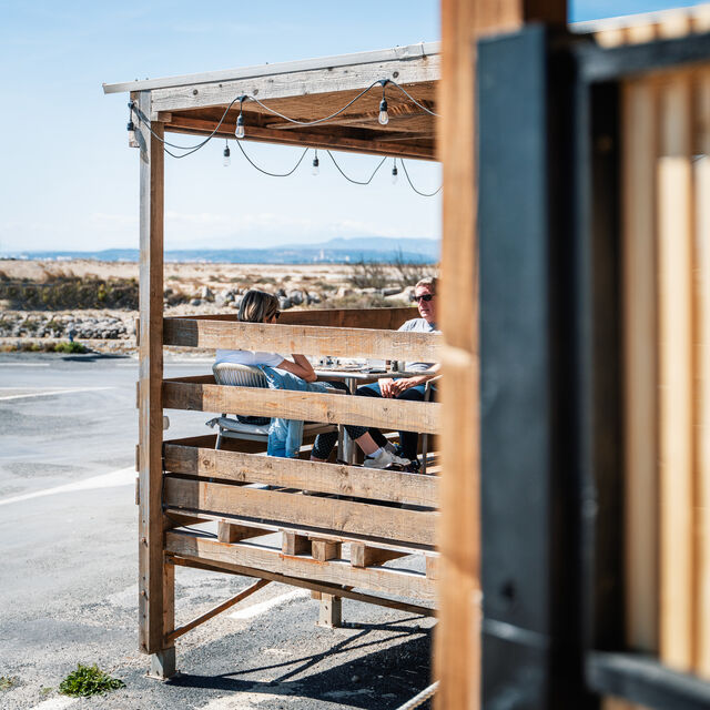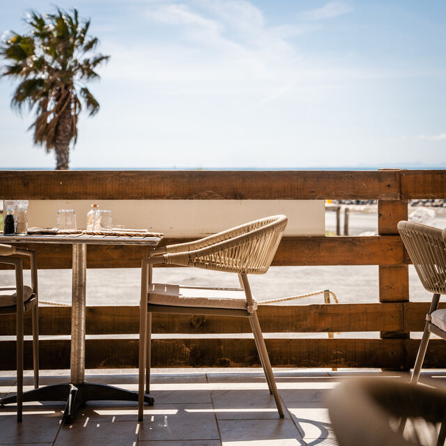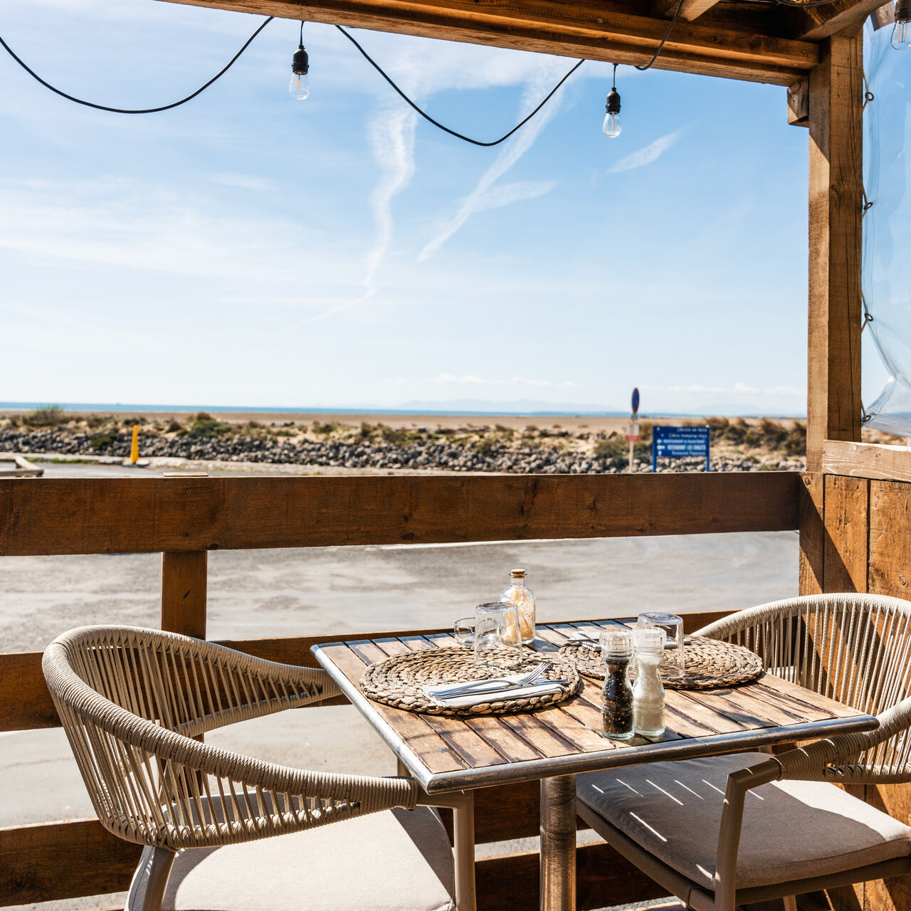 Couvert et à l'abri du vent du Nord, cet espace extérieur vous offre une vue imprenable sur la plage sauvage de la Vieille Nouvelle, et par temps clair sur le Pic du Canigou.
